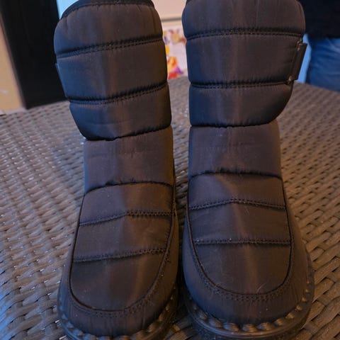 Fluffiga och varma stövlar i nylon som är vattentäta och ankellånga. Skaftet avslutas med bandkant i resår. Har en platt och grov gummisula och tjock dekorativ snörning framtill. Perfekt för kalla höst- och vinterdagar. På baksidan finns ett svea logoband.