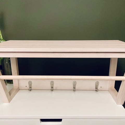 Alfred hatthylla från SMD Design är en stilren och praktisk förvaringslösning i vitt, perfekt för hallen eller sovrummet.