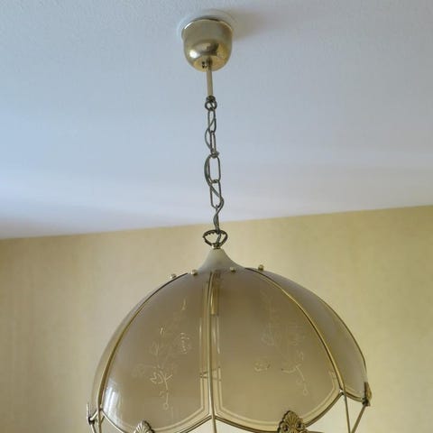 En elegant taklampa med ett vackert blommotiv. Lampan har en tidlös design som passar i de flesta rum. Den ger ett behagligt och stämningsfullt ljus. Jättefint skick.