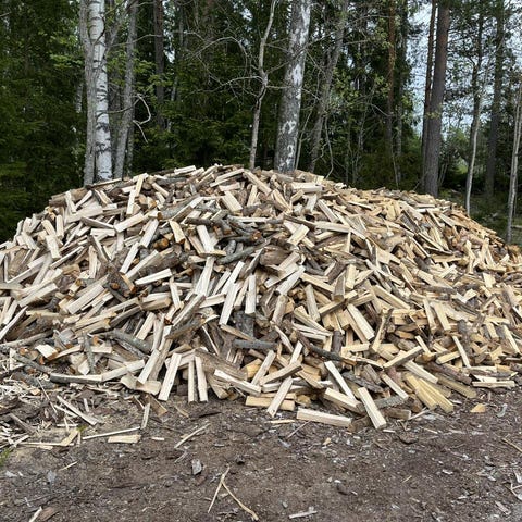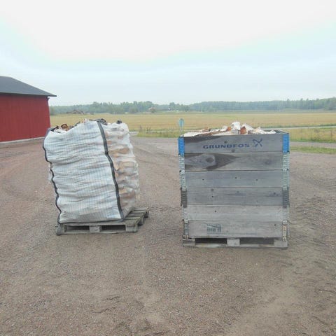 Ger 10 kr "pant" för IKEA-kassar. Dvs ger du mig en kasse i pant och köper en kasse betalar du bara 100kr för veden (250kr för 3 kassar om du samtidigt "pantar" 3 kassar).