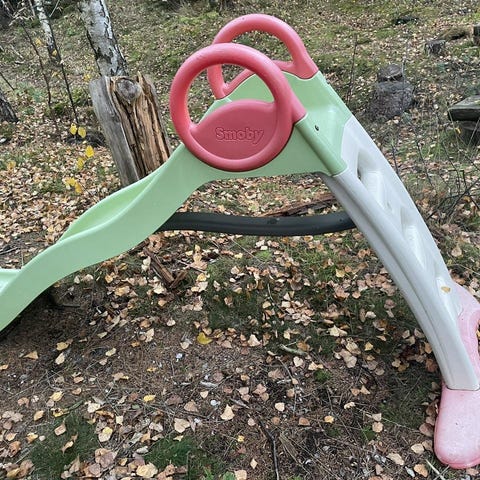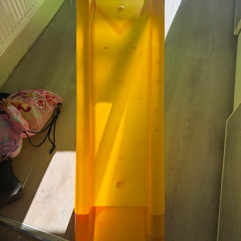 Stadig och bra rutschkana för småbarn, säljes då våra barn vuxit ur den. Höjd 100 cm. Blivit smutsig med tiden, jag har spolat av det värsta men den går nog att få riktigt fin om man skrubbar med medel. Från little tikes.