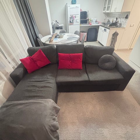 Finns fläckar på tyget, har ej testat med fläckborttagning.
