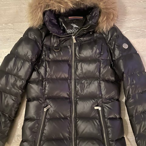 Mörkblå vinterjacka från Snoot. Många fickor och praktiska detaljer. Krage i päls. Passar ST. 34/36.