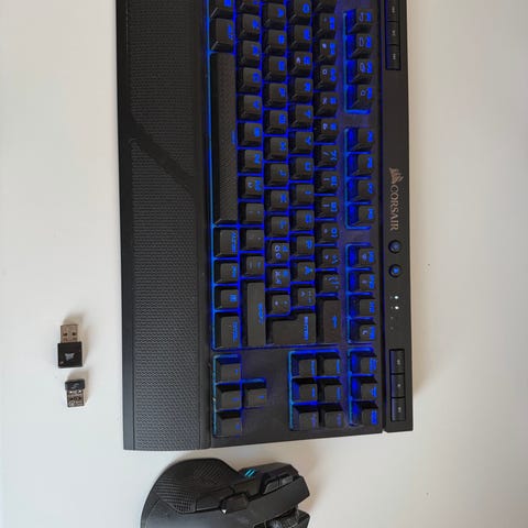 Ett set av trådlöst tangentbord och mus från Logitech. En usb som kopplar till de båda. Batterier inte inkluderat.