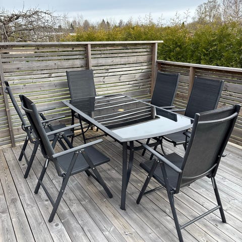 Bord trasigt går att fixa. 6 stolar i bra skick.