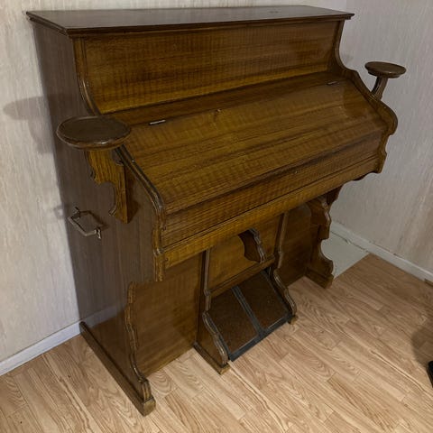Ett piano av tramporgel typ. Är relativt välstämt (ytterst välstämt om man tänker att det är en gratis variant ;P).