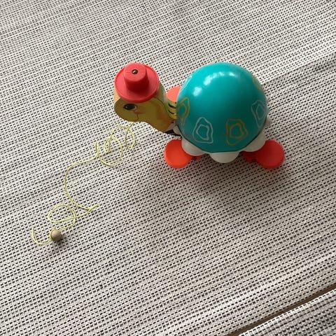 Fin leksak, motorik och form/färg tryck ner klossarna så åker sköldpaddan huvud ut *poff*