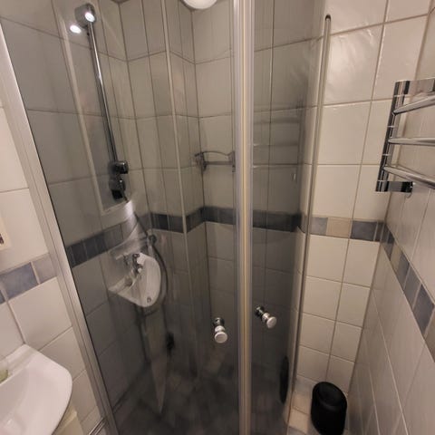 Stilrena, svängbara väggar 78x78 cm i klarglas från Macro Design. Använt men gott skick. Bild från Macros hemsida eftersom dessa står i förråd. Behöver hämtas omgående.
