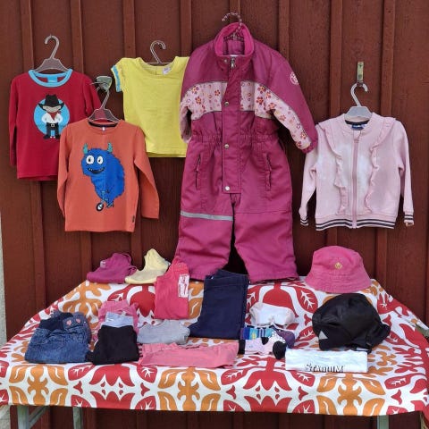 Jag säljer ett paket med barnkläder i gott skick. Vissa plagg kan ha lättare slitage, men allt är helt och användbart. Perfekt för dig som vill fylla på barnens garderob till bra pris!