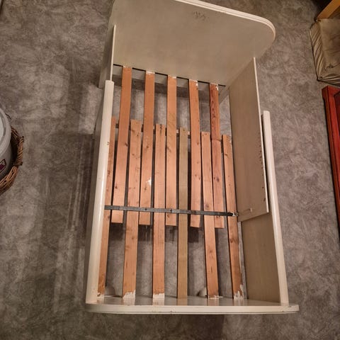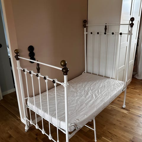 Utdragbar vit barnsäng (växasäng) i järn från förr i t