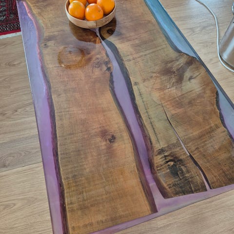 Soffbord ek, svart resin, ben i rostfritt stål.