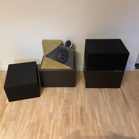 Väl fungerande och optiskt i mycket fint skick. De spelar utmärkt och verkar vara i original eller renoverat skick. Kontakter i botten bytta till XLR. Jag har inte och tänker inte skruva ur elementen.