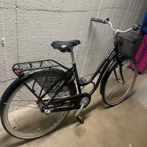 Snygg klassisk damcykel med fin cykelkorgen.