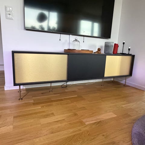 Bokhylledelarna ska egentligen stå ovanpå skänkdelarna men jag har ställt dessa isär hos mig.