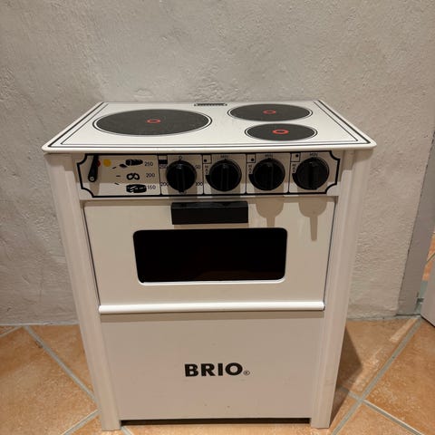 Briospis med massor med tillbehör som kastruller , stekpannor , caféset , mat leksaker ,