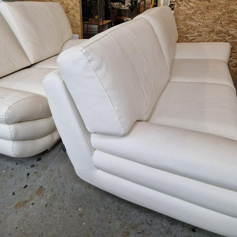 Säljer läder soffa sett beige 3 och 2 sits som ny.