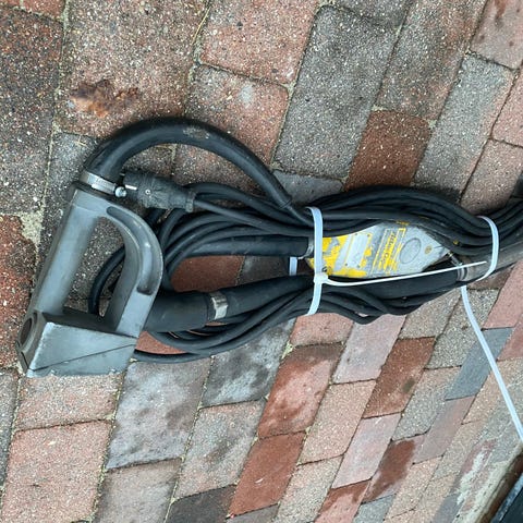Fresh-Air Air Star andningsmask med slang och huvudband. Används för skydd mot luftburna partiklar och för att förbättra andningskomfort vid arbete i miljöer med dålig luftkvalitet.