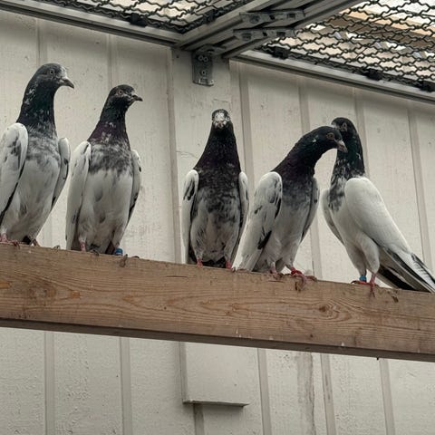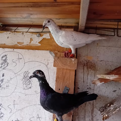 Brevduvor söker nytt hem. Dem är inte handtama än men heller inte ovana vid människor. De är allt från vuxna som lägger ägg och förra årets ungar. Välkommen att höra av er vid fler frågor:)