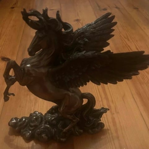 Säljer en bronstjur, bronsanka, tennlejon tillsammans som ett paket, skulptur