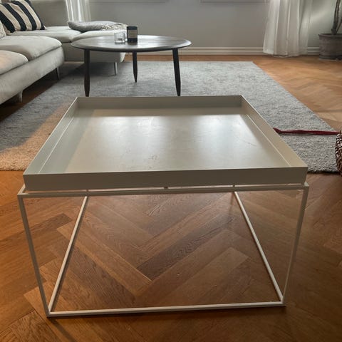 Hay tray bord VITT litet bord sidobord soffbord. Det minsta. Redan sänkt pris så pruta ej. Ni får med pluppar att ha under brickan.