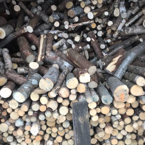 Torr björkved i 40 liters säckar. Ca 30 cm lång.