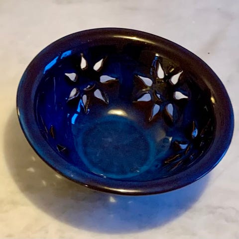 Hjärtformad skål i keramik eller liknande material. Märkt “Lots living”. Nyskick.