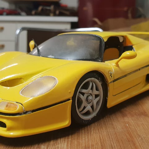 1 ST SCALA 1.18 MED SVÄNGBARA HJUL PÅ RATT ÖPPNINGSBARA DÖRRAR MOTORHUV-FLIPPFRONT V-6 12 CYL