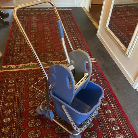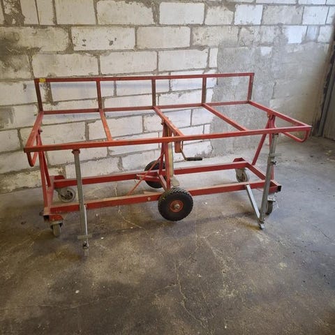 Spackel vagn med fäste för visp, rejäla handtag. Rullar på hjul och har låsning för tunna med tippstöd i fram som är löstagbara. Extremt lättjobbat att spackla med, den står och vispar medans du drar till det som precis lades ut.