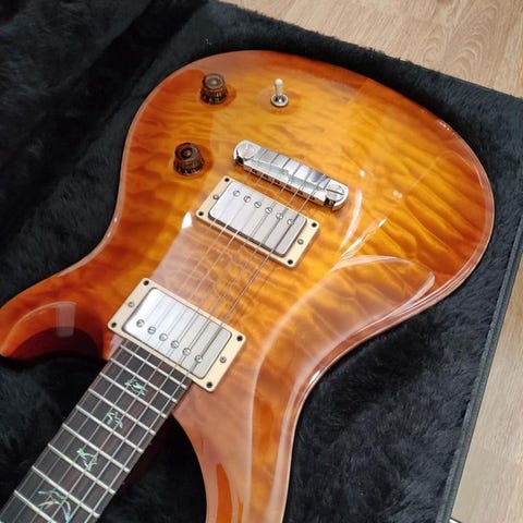 Nyinkommen mycket fin begagnad 1999 PRS McCarty Hollowbody Piezo med underbart fin flammig topp.