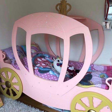 Magisk Disney Prinsessäng med sänghimmel & förvaring. Drömsäng för små prinsessor! Charmig Disney prinsessvagnsäng med vackra motiv och en mysig sänghimmel som skapar en sagolik sovplats. Vid fotänden finns en praktisk bänk med två förvaringslådor – perfekt för leksaker eller sängkläder.