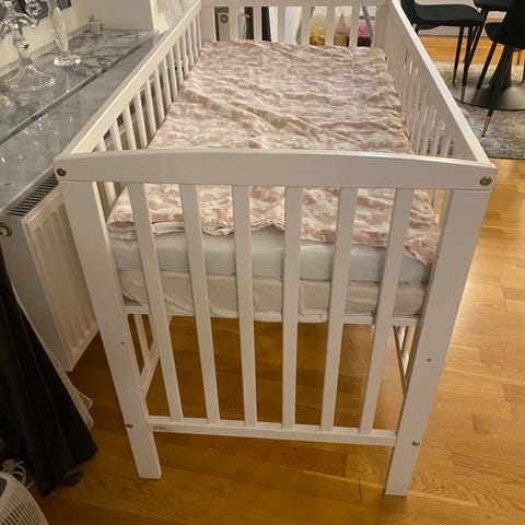 Sängbasen är justerbar i tre höjder Sängen kan kompletteras med en juniorgavel. Madrass medföljer. Nypris: runt 3000 kr.