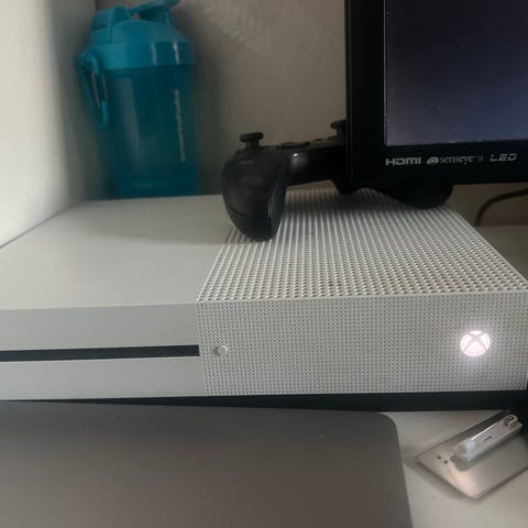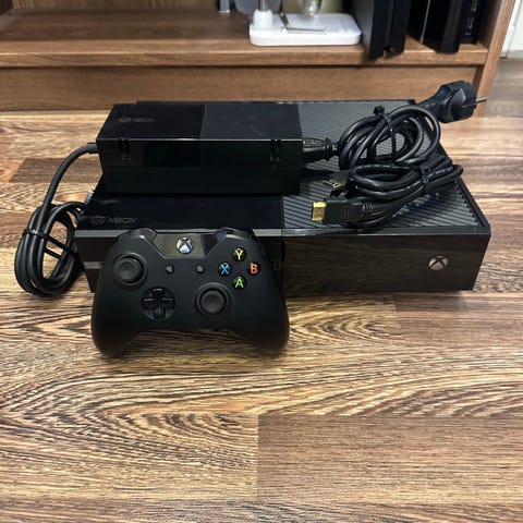 Med 2 handkontroller, använd i gott skick, 4 spel (RDR2, Fifa 17, BO3 och 2K17). Helt återställd och redo för att spela på!