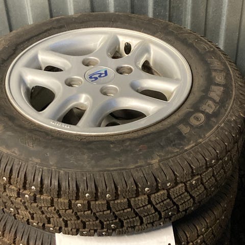 2st 4/100 Nav 52,1 13” plåtfälgar, dubbfria / åretruntdäck 175 70 R13 6mm mönster, passar bl.a. Volvo 340/ 440 Pris. 400kr