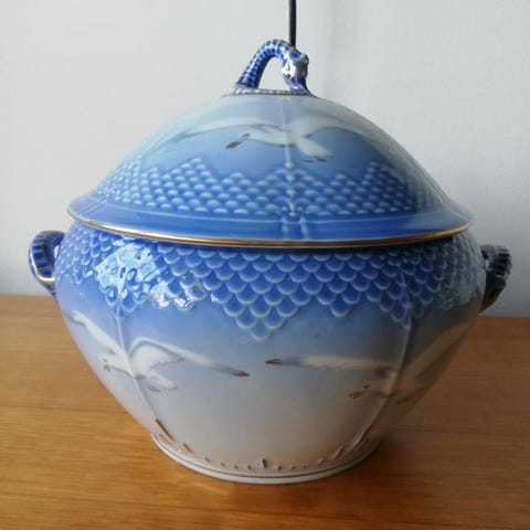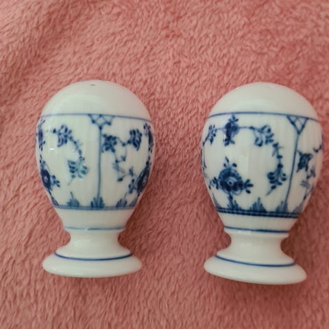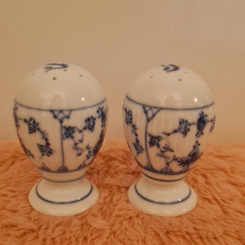 Salt och peppar kar, Blå Måsen, höjd 8 cm, felfria, enbart handdiskade, guld kant.