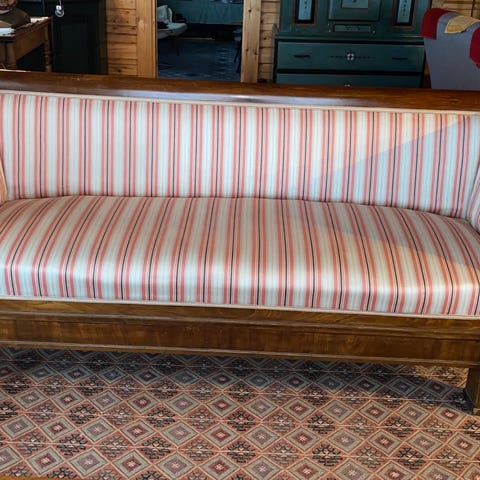 Fin kökssoffa 188x63 med sitthöjd 53 cm. Säljer även fyra stolar i matchande träslag/nyans på bets. Se separat annons.