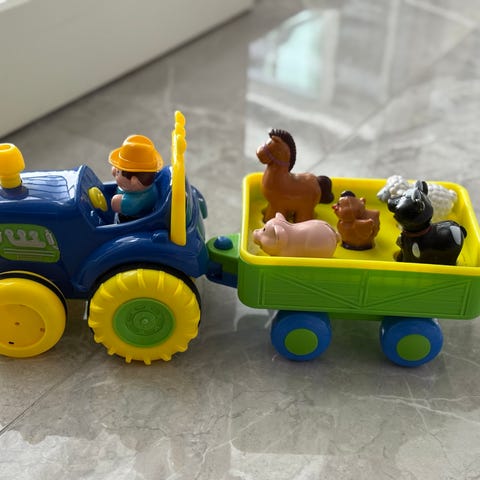 För de små som vill leka bondgård! Traktor med vagn och bonde samt 5 bondgårdsdjur med olika djurläten från