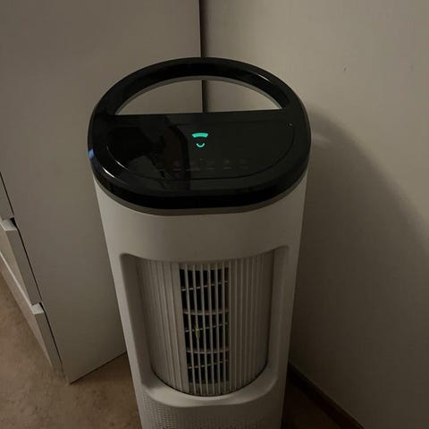 Det finns även en skål, i den kan man hälla vatten eller isbitar, för att fukta eller kyla luften. Har inte testat den funktionen.