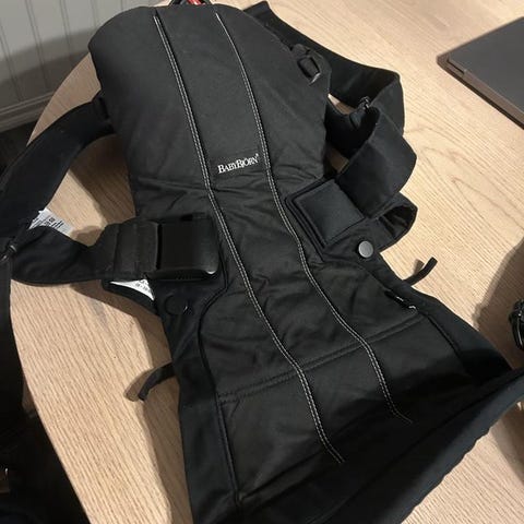 Väldigt smidig och uppskattad bärsele från Babybjörn. Knäpps smidigt framtill utan jobbiga spännen baktill.