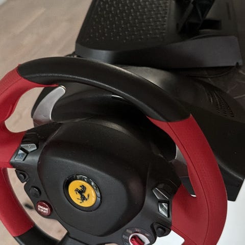 Säljer min simulatorratt med pedaler som ger en grym känsla och gör bilspelandet mycket roligare och mer verkligt. Perfekt för dig som vill ta ditt racing till nästa nivå hemma i vardagsrummet! Jätteenkelt att koppla in, göra bara med sladden på bild i konsolen sen bara tuta och köra, är i första fall till för xbox men kanske funkar på andra konsoler också, sladden kan glappa ibland men inte ofta. Går ner i pris vid snabb affär. Frakt endast!