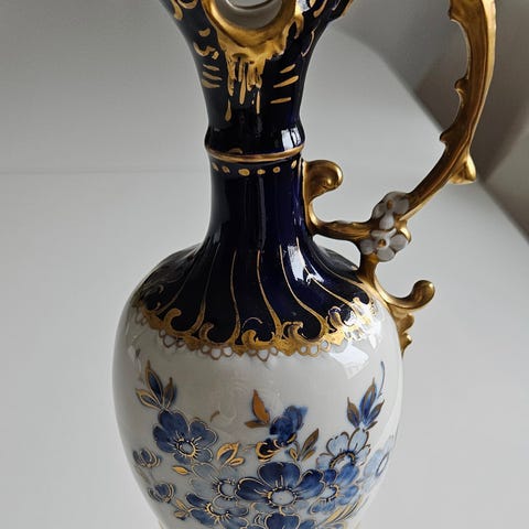 Sökord: porslinsvas, italiensk, Italy, 70-tal, retro, vintage, blå vas, gulddetaljer