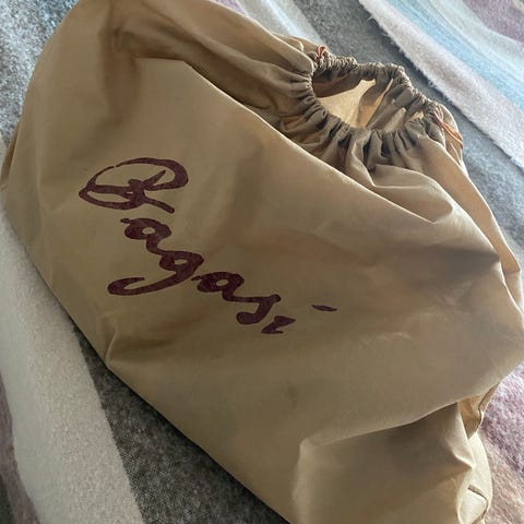 Kommer i förvaringspåse/dustbag. Namntagg i samma skinn finns med.
