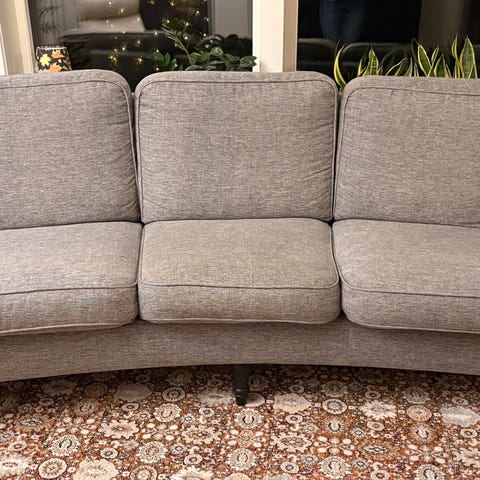 Fint skick, köpte den på Blocket för ett år sedan och har varit mycket nöjd men den är lite för stor för min lägenhet. Inga defekter förutom ett hål på baksidan av en sittkudde, som alltså inte syns.