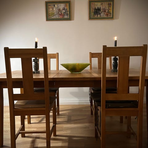 Trästolar i mörk ek