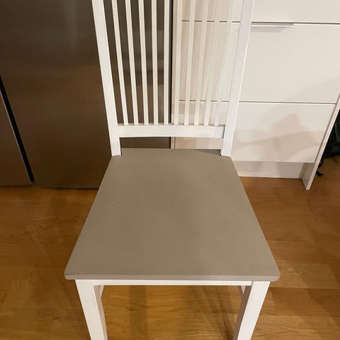 4 st egenrenoverade ekstolar som skulle behöva lite ny kärlek. Stolarna är stoppade i grovt vit linnetyg och betsade i mörk ek. Klädseln är inte avtagbar och har flera märken så skulle rekommendera att klä om dom. Underbart stilrena, sköna och robusta stolar.
