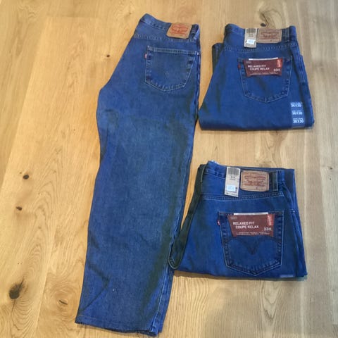 Ett par snygga Levi Strauss & Co. Dom ser nya ut med några små tecken på användning.
