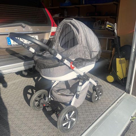 Säljer vår Anex E-Type barnvagn i fint skick. Den har använts men är väl omhändertagen. Några små repor finns vid fotstöden vid hjulen, så den är inte som ny, men fortfarande i mycket bra skick.