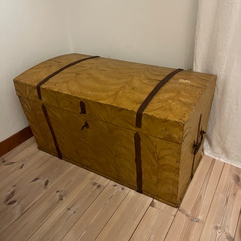 Kistan är utsmyckad med kurbitsmålad dekor, en traditionell svensk folkkonststil.