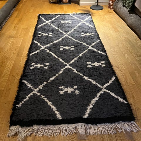 Supermjuk och skön matta i alpacka från Beach House som ej kommer till användning då vi har värmegolv.