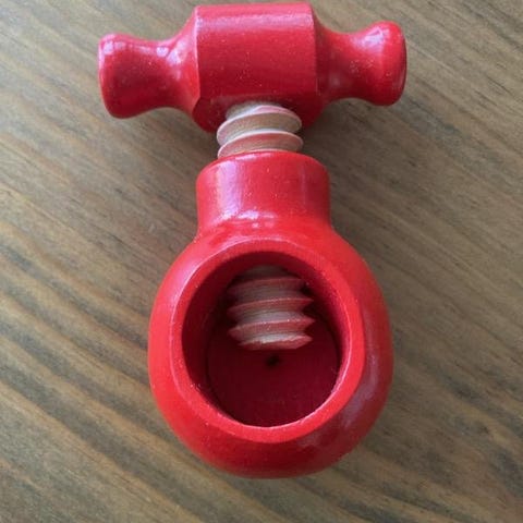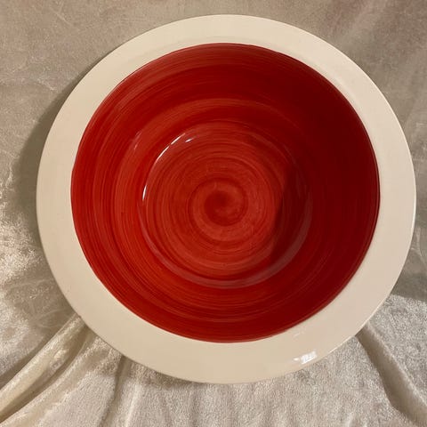 Jättefin paradhanddukshängare med brodyr i rött. Tyget är vitt men fotot togs i lite dämpad belysning.