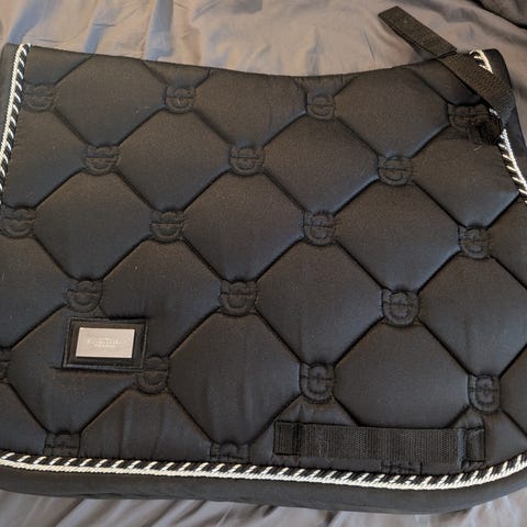 Säljer brunt dressyrschabrak med rosa kant.